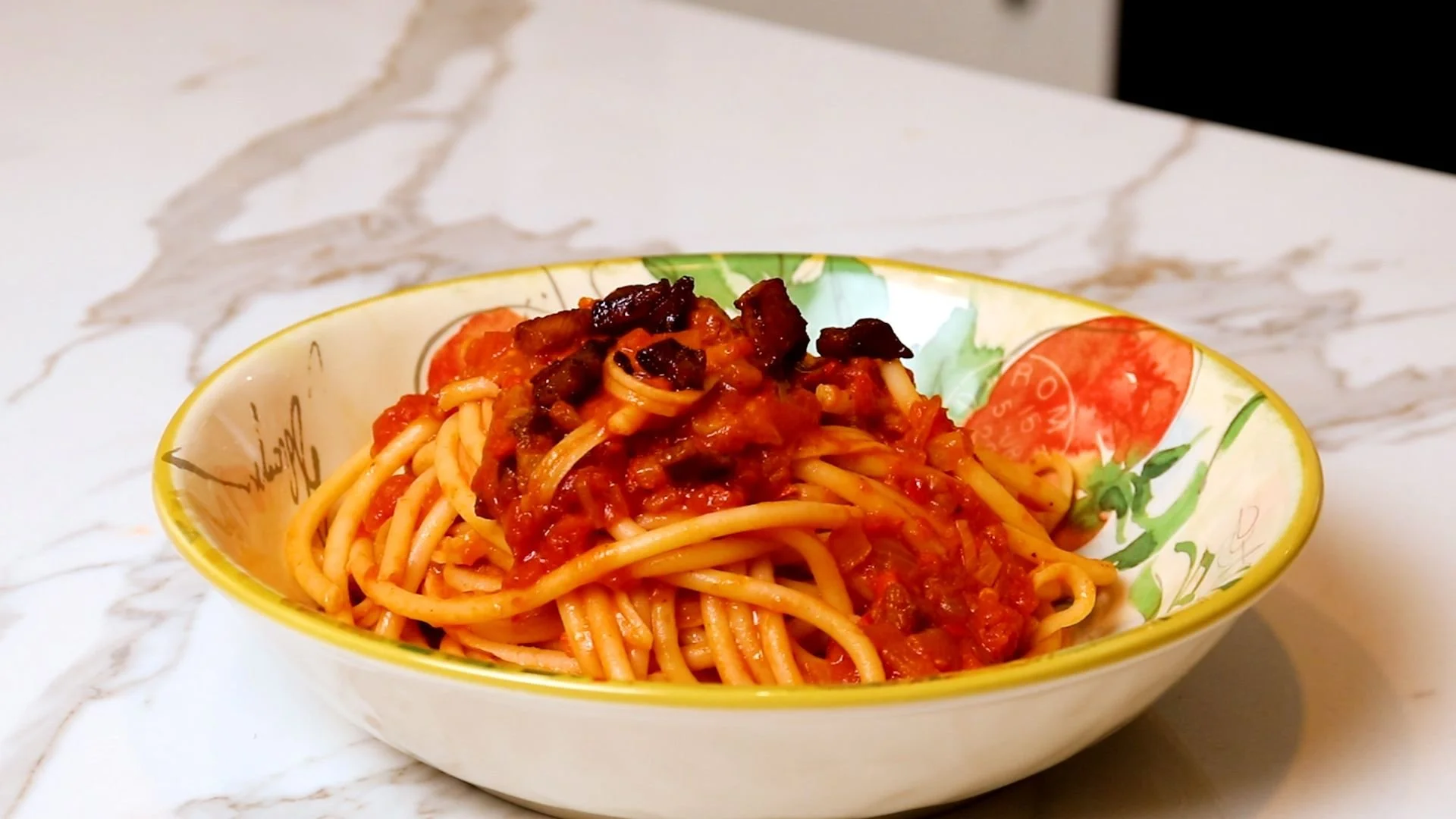 Pasta Notes: if you see this dish on a menu, or just anywhere in general, 99% of the time, it’s made with bucatini. That being said, if you’re dying to make this sauce and can’t find bucatini or want to use what’s in the pantry, any hearty pasta that can withstand a substantial sauce will do. We suggest rigatoni as an option.