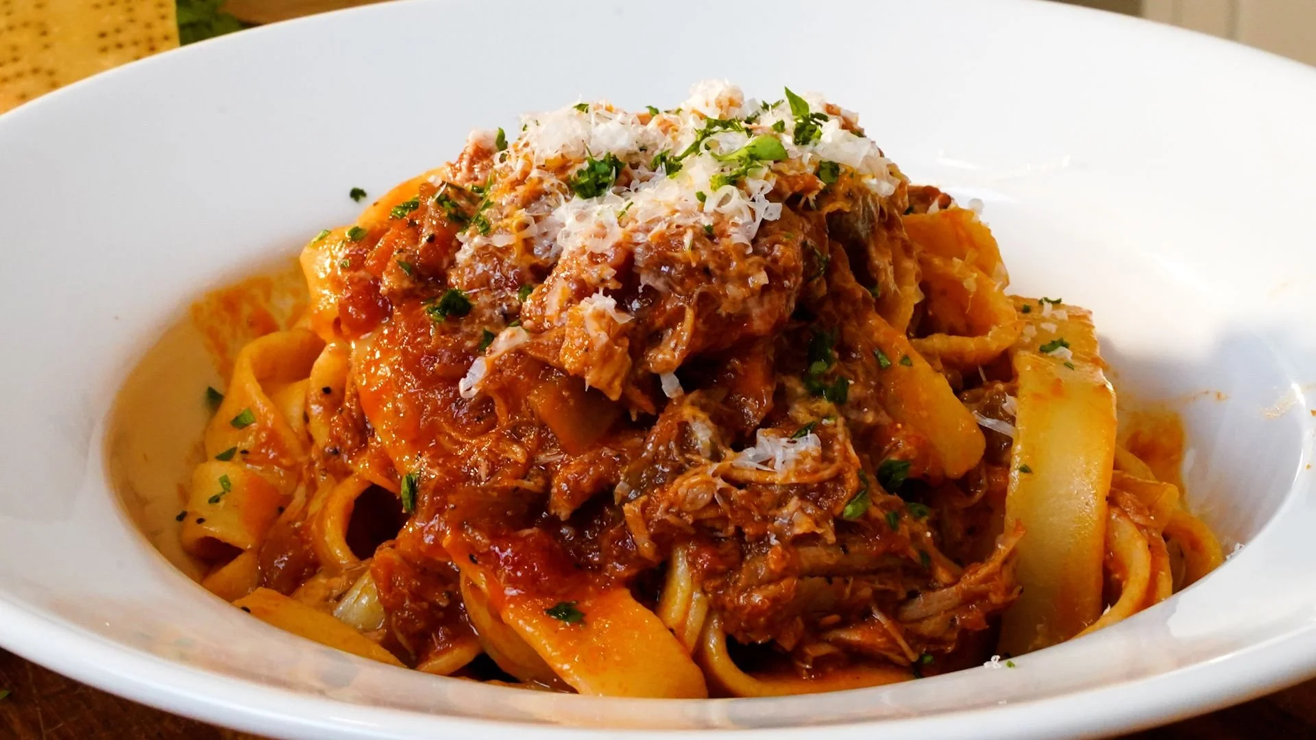 Pasta: We like pappardelle for this ragu, as it’s a classic combination, but you can use any hearty pasta of your choice. If using a “twirly” pasta, we would not suggest anything thinner than a linguine. This would also be delicious with a rigatoni or any other pasta you think could handle a thick, meaty sauce.