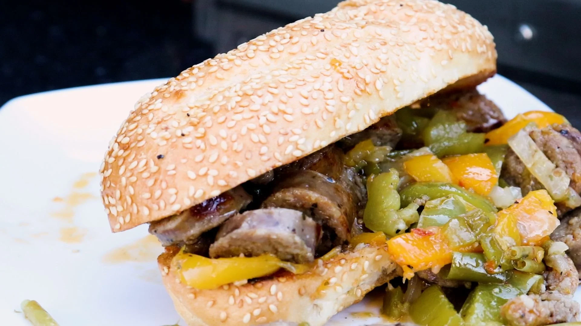 We suggest throwing your bread/rolls on the grill face down just enough to lightly toast them before adding your sausage and peppers to the bread, as this prevents the juices from absorbing too much into your bread and won’t get soggy. Sausage & peppers are delicious served alone without the bread, but it’s extra perfect when you turn this dish into a sandwich.