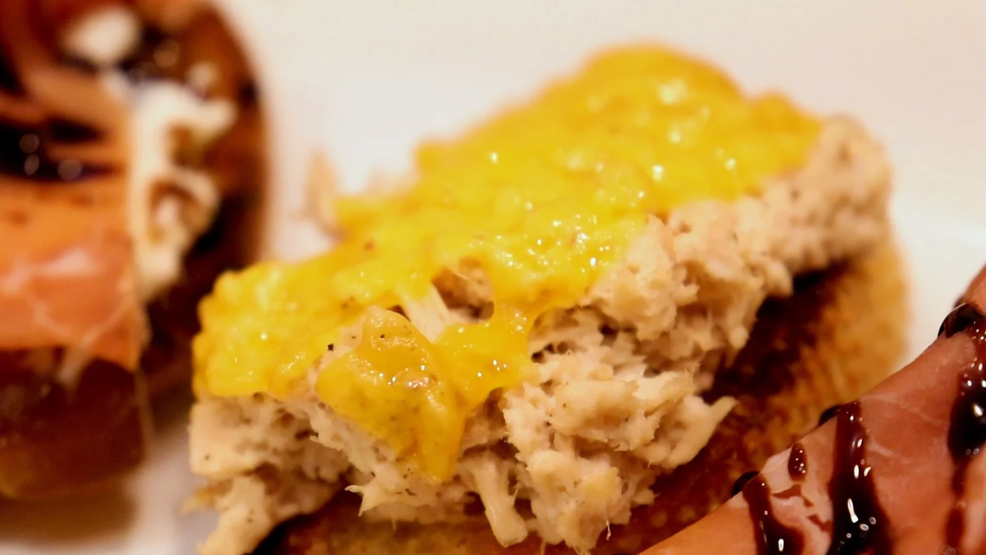 Top each piece of toast with a heaping spoonful of tuna. Place one slice of cheese on top. Place crostini’s back in your broiler on medium, just long enough for the cheese to slightly melt, and remove.